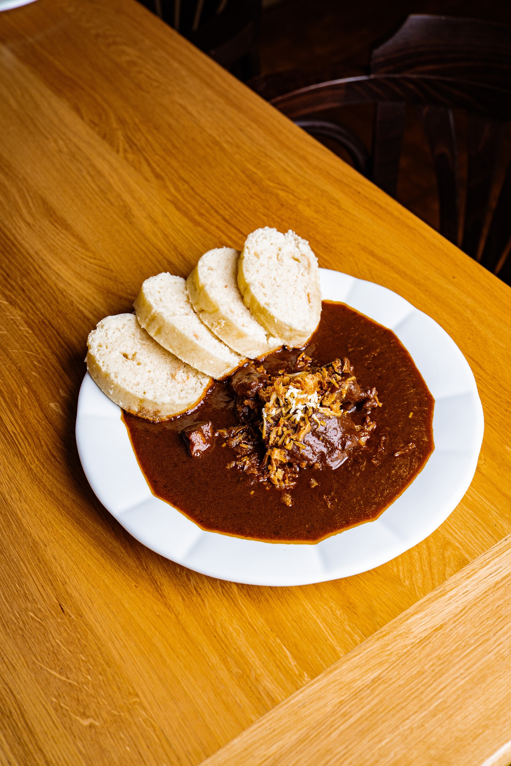 Kuchyně staví na tradiční české gastronomii v moderním pojetí. Nabízí klasiky s novým šmrncem a chutí piva v hlavní roli. Signature pokrmem je pivní guláš podle vlastní receptury, podávaný s kynutým knedlíkem, sladkou tečkou pak pivní štrúdl. Menu se pravidelně obměňuje a spolupracuje se sezónními i lokálními dodavateli.